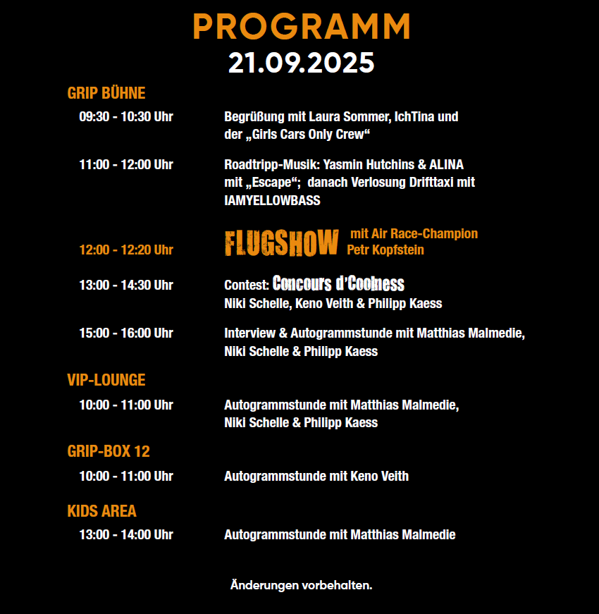 Die GRIP Events sind für jeden Autofan ein echtes Muss – mit dem besten Kumpel, der Freundin oder mit der gesamten Familie!