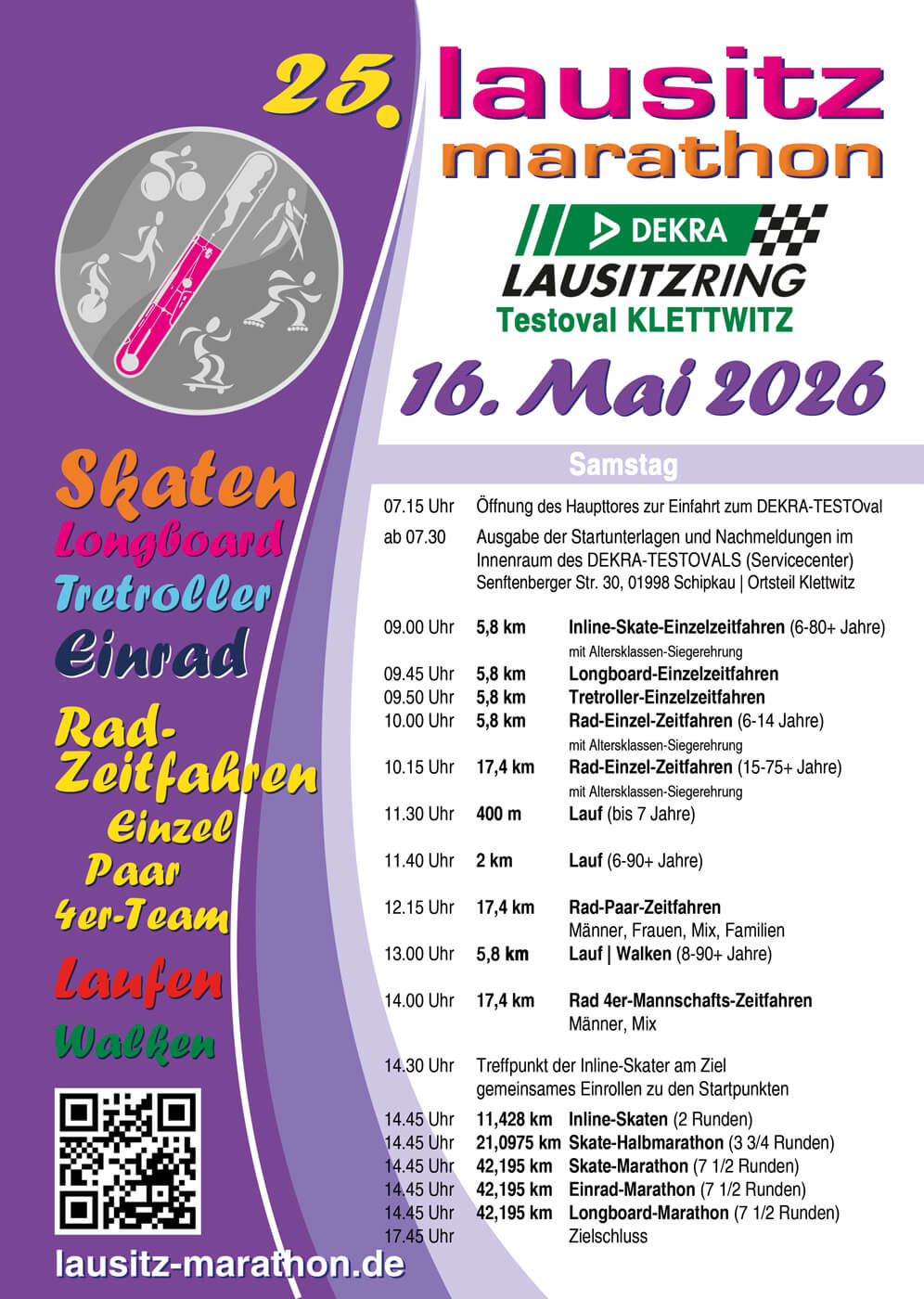 Am 16. Mai 2026 wird der DEKRA Lausitzring zum Treffpunkt für Ausdauersportler und Zuschauer. Der Lausitz-Marathon nutzt das Testoval und schafft eine besondere Atmosphäre, in der Bewegung und sportlicher Ehrgeiz im Mittelpunkt stehen.