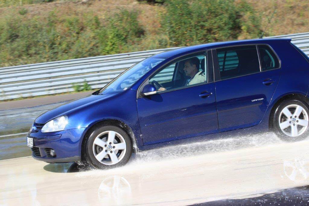 Die Teilnehmerinnen verbessern an dieser Station das Bremsen und Ausweichen auf unterschiedlich glatten Belägen. So lernen sie ihr Fahrzeug besser kennen und perfekt auf Gefahrensituationen wie z. B. Schnee und Eis zu reagieren.