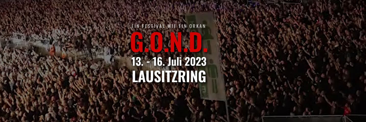 G.O.N.D. – diese 4 Buchstaben stehen wie in Stein gemeißelt für das größte Festival im Bereich „Onkelz-Cover & Deutschrock“. Nach der Verkündung der Auflösung der Böhsen Onkelz 2004 und deren Abschiedskonzert am Lausitzring 2005 wurde mit der G.O.N.D. bereits 2006 ein Festival geschaffen, das das Feuer der Onkelz weiter brennen lässt und den besonderen Spirit, der dieser Band anhaftet, weiter trägt. Natürlich liegt das Hauptaugenmerk nach wie vor auf der Musik der vielleicht größten deutschen Rockbands aller Zeiten – den Böhsen Onkelz, weswegen eine Vielzahl an Coverbands jedes Jahr dort auftreten, um ihren Göttern Tribut zu zollen. Im Line-Up sind aber auch jede Menge verschiedene Bands aus denen Bereichen Deutschrock, Metal, Rock & Party zu finden. >>> G.O.N.D. – Ein Festival wie ein Orkan. <<<